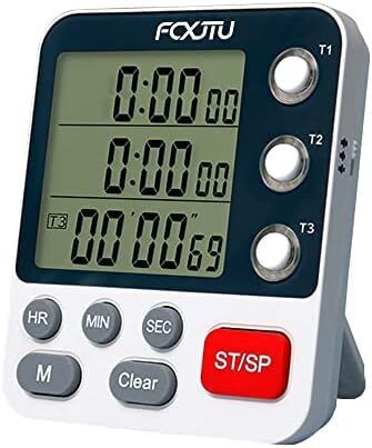 FCXJTU Digital Triple Kitchen Timer, 3 Channels Count UP/Down Stopwatch Timer,