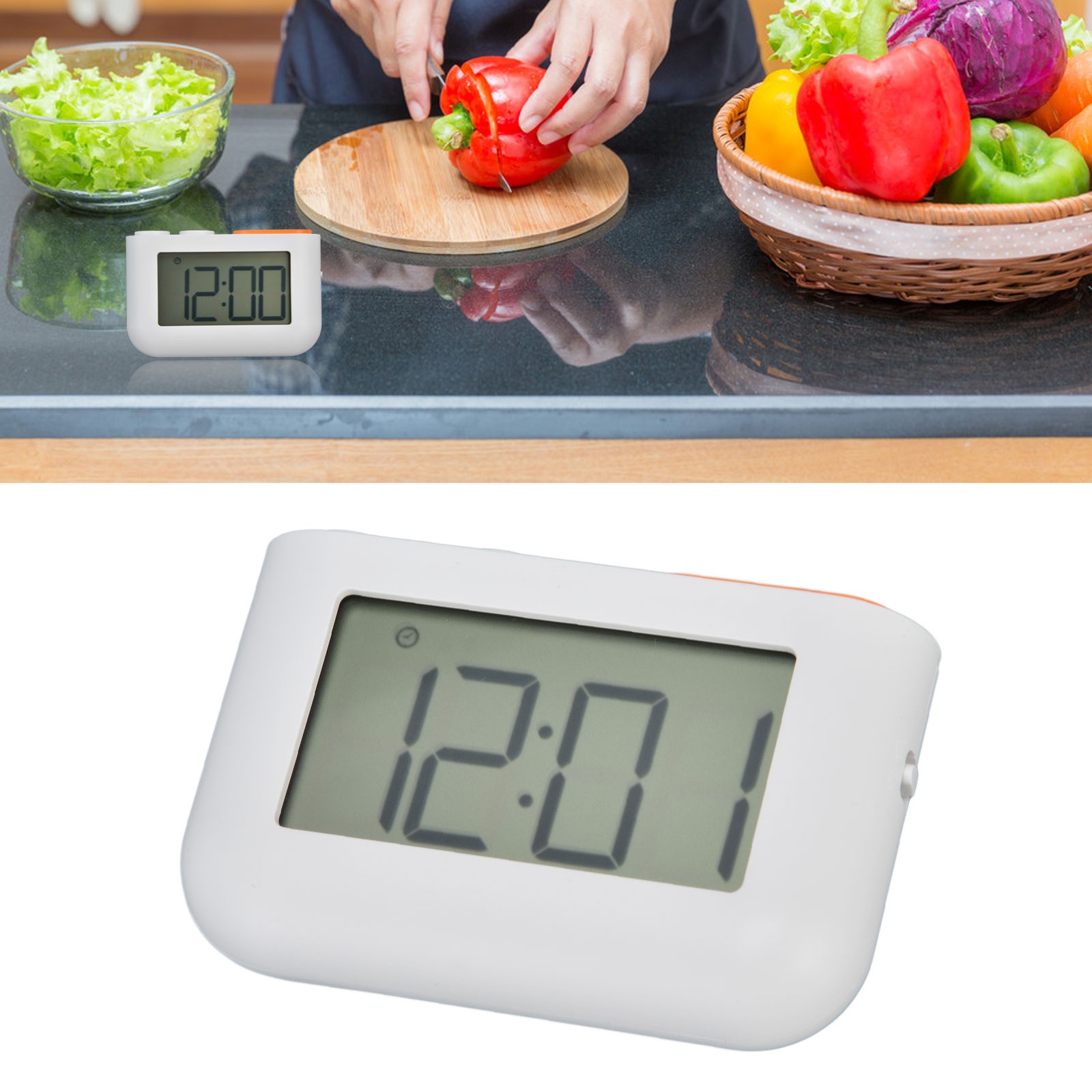Magnetic Kitchen Digital Timer Clock Alarm with Mute/Loud Alarm Switch,3 in 1 Multifunctional 24H Count UP/Down Timer,LCD Display Memory Function White