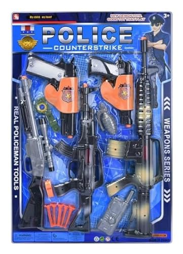 Police Counter Strike Toy Gun Set with Accessories, Blue and Black, Plastic, 3+ Years, Multiple Weapons