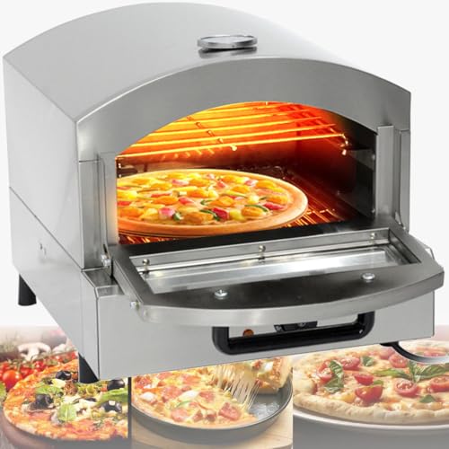Countertop Gas Pizza Oven, Stainless Steel Outdoor Fired-Pizza Stove, Adjustable Temperature, with Pizza Stone, 360° Uniform Temperature, Commercial Pizza Maker, Quick Heating, for Steak, Chicken