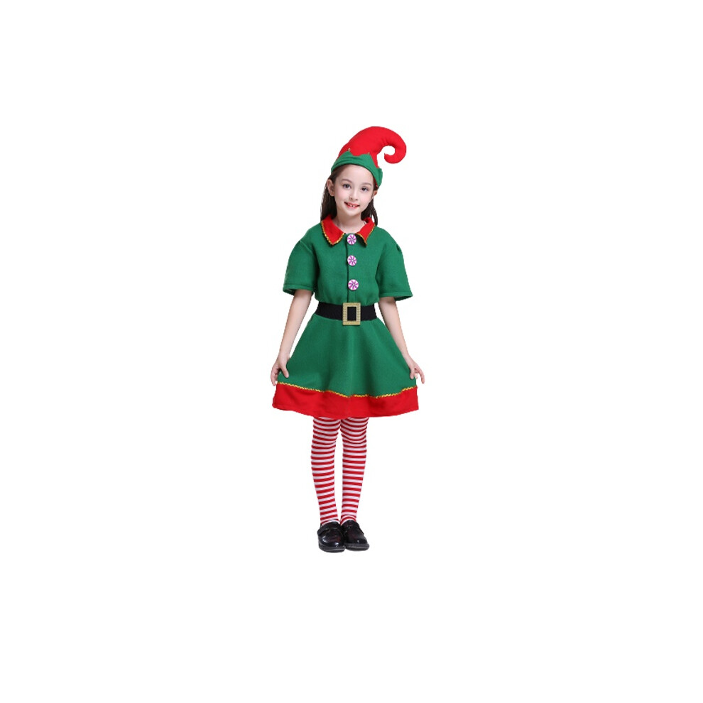 (Girl, 130cm) Elf Kid Christmas Cosplay Costume Couple Outfit Fancy Dress Xmas Play Party Role
