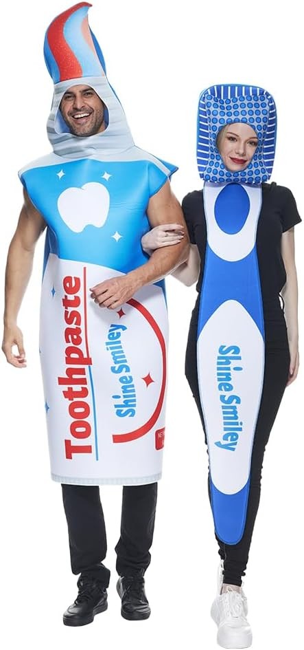 EraSpooky Toothbrush and Toothpaste Costume Couple Halloween Fancy Dress Adult