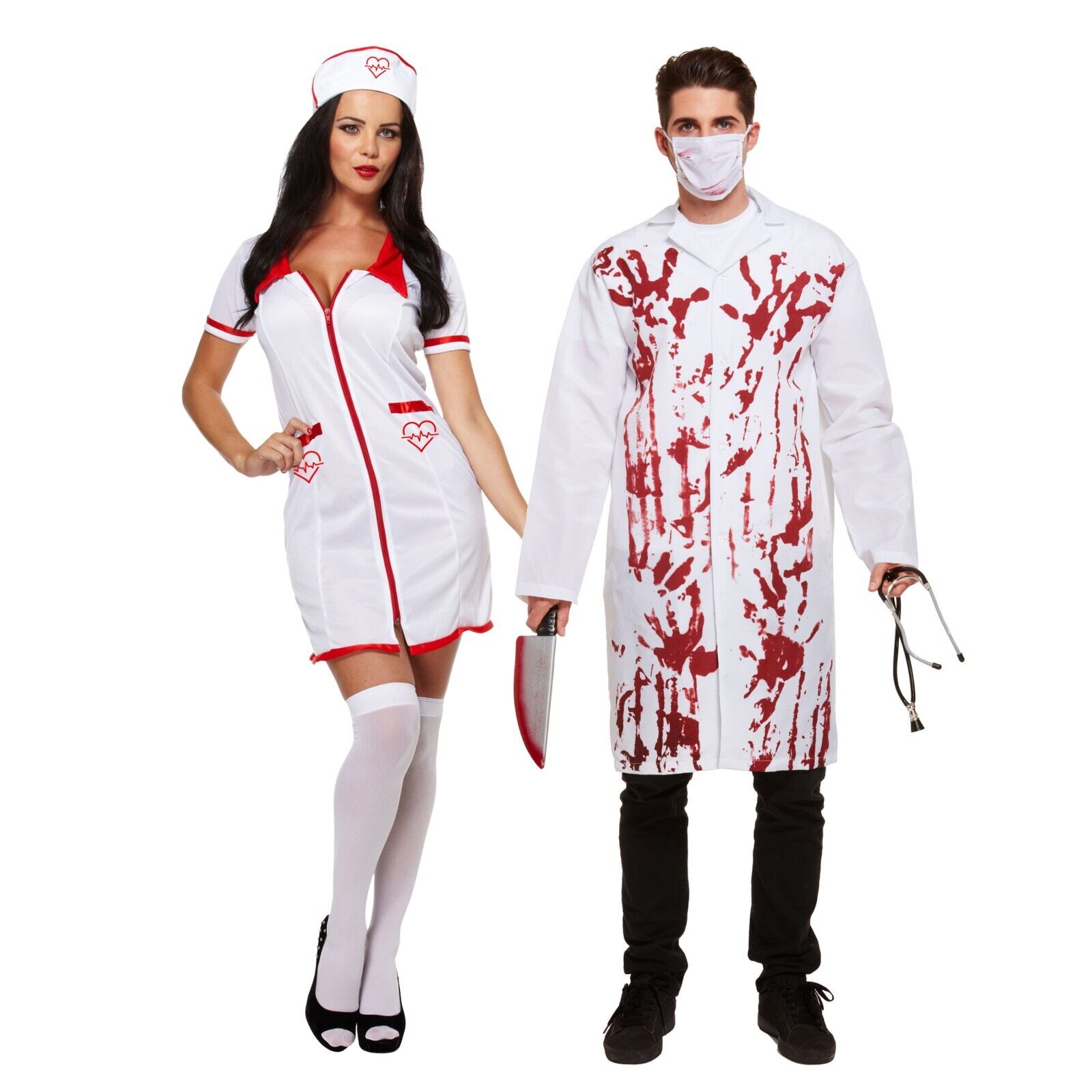 Adult Bloody Doctor & Sexy Nurses Couple Halloween Fancy Dress Party Costume