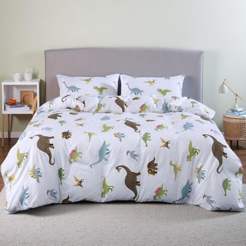 MAG 3Pcs White Dinosaur Duvet Cover,Colorful Dinosaur Bedding Twin,for KidsToddler,Teens Boys and Girls,Soft Microfiber,Twin Size.(No Comforter).