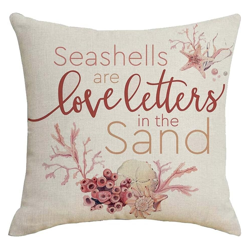 Seashells are Love Letters in The Sand Cotton Linen 18''X18'' Square Throw Pillow Case Cushion Cover for Home Sofa Bedding