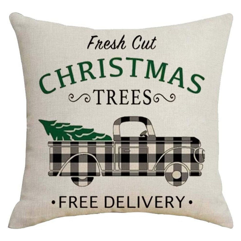 Merry Christmas Trellis Farm Car Christmas Tree Gift Cotton Linen 18''X18'' Square Throw Pillow Case Cushion Cover for Home Sofa Bedding