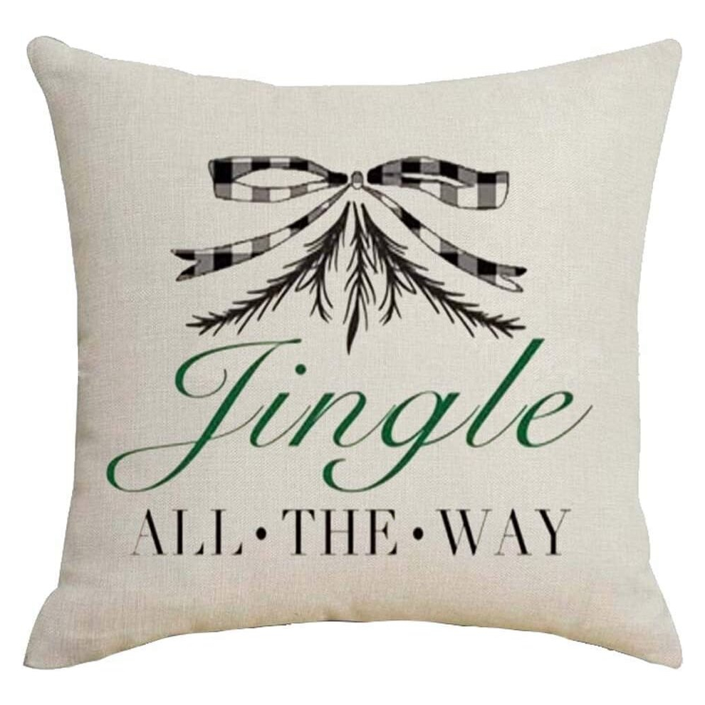 Merry Christmas Jingle All The Way Cotton Linen 18''X18'' Square Throw Pillow Case Cushion Cover for Home Sofa Bedding