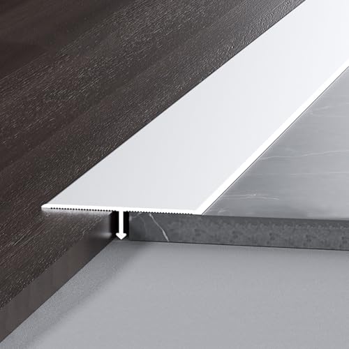 WORDFUN Aluminum T Molding Floor Transition Strip, Black/Silver/White Threshold Seam Cover Strip, Doorway Edge Trim, Scratch-resistant, Transition Bar For Tile, Wood, Laminate, Joins Gap(Silver,20mm)