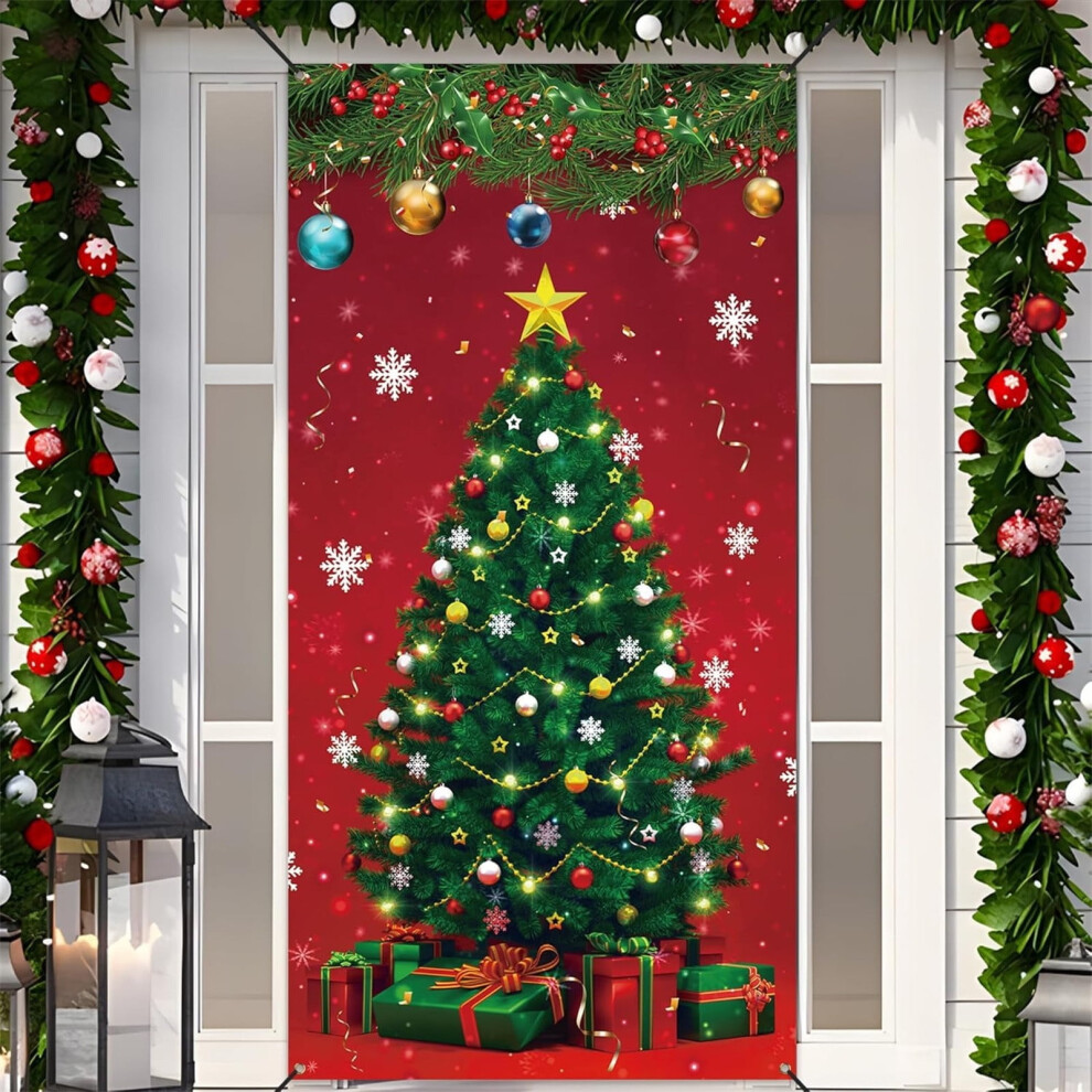 Christmas Door Cover, Xmas Party Background Door Cover, Thermal Insulated Temporary Doorway Cover Room Divider Drapes, Gifts for Women Men