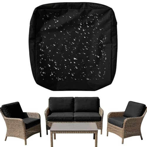Waterproof Sofa Seat Cushion Covers with Zipper,Replacement Patio Chair Cushion Slipcover 60x60cm 50x50cm Washable Seat Pad Cover,for Garden Furniture Protector(Black,50x50x5cm)