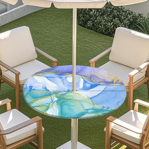 Highdi 3D Round Table Cover with Hole, Outdoor Garden Table Cover with Elastic Waterproof Non-Slip Circle Table Cloth Stretch Fitted Tablecloth Protector for Home Hotel Dining (Quicksand Marble 1,S)