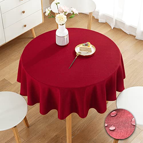 Pahajim Table Cloth Wipe Clean Waterproof Tablecloth Round Wipeable Cotton Linen Table Protector Simple Style Table Cover for Kitchen,Garden,Outdoor Table Decoration(Red,53 x 53 inch)