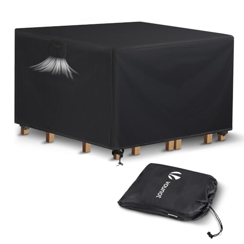 VOUNOT Garden Furniture Covers, 135x135x73cm, Waterproof, Anti-UV, Windproof, Heavy Duty Oxford Fabric with Reinforced Lines, Air Vent, Patio Set Cover for Outdoor Garden Chair & Table, Black