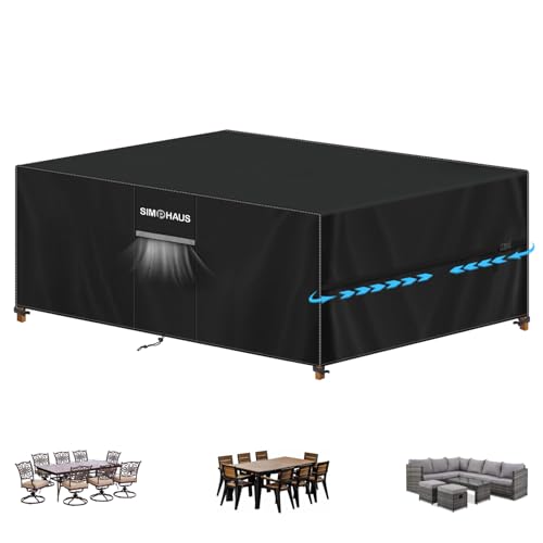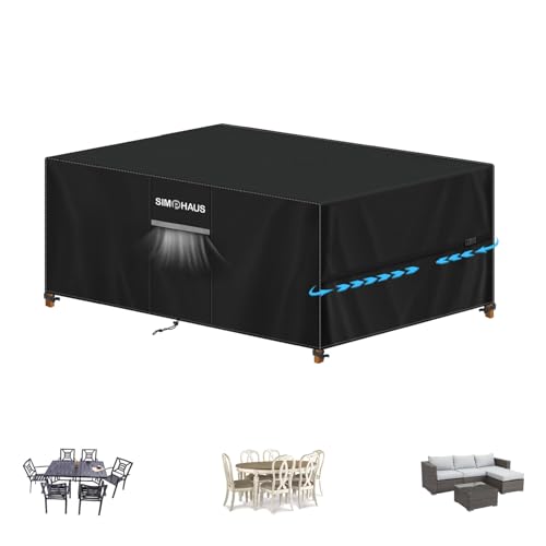 SIMPHAUS Garden Furniture Covers Waterproof Garden Table Covers,Heavy Duty 420D Oxford Fabric Tear Resistant Outdoor Patio Table Covers,Patio Set Cover for Garden Table,Chairs,Rattan Sofa 270x180x94cm