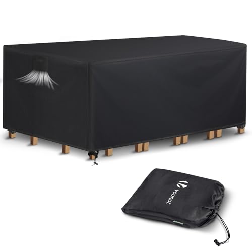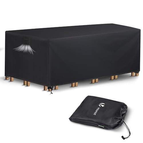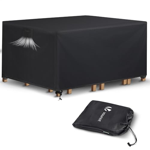 VOUNOT Garden Furniture Covers, 242x162x73cm, Waterproof, Anti-UV, Windproof, Heavy Duty Oxford Fabric with Reinforced Lines, Air Vent, Patio Set Cover for Outdoor Garden Chair & Table, Black