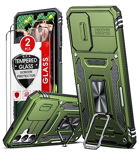 LeYi Armour Case for Samsung Galaxy A14 4G / A14 5G, Samsung A14 Case with Camera Lens Cover Slider, Ring Stand Holder Military Grade Protective Shockproof Phone Cover for Galaxy A14 Green