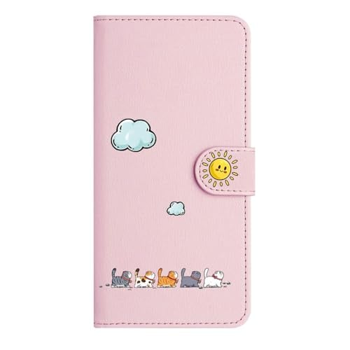 Nbziyoo Lovely Cats Phone Case for Samsung Galaxy A14 4G,Cute Cats/Sun Flip Wallet Case with Card Slots, Premium Magnetic PU Leather Cover for Samsung Galaxy A14 5G,Pink