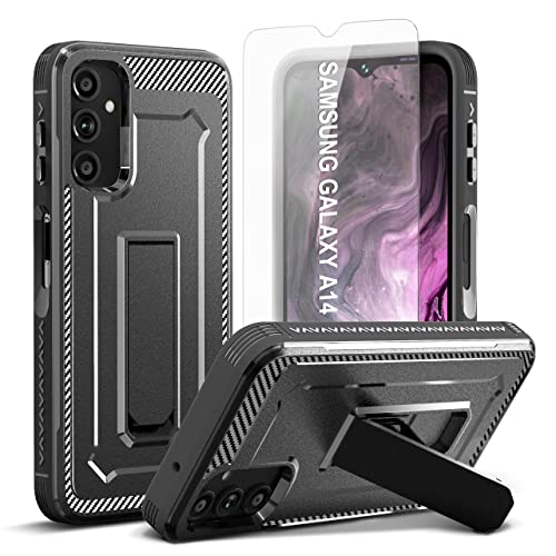 ORETECH for Samsung Galaxy A14 5G Case, and [Tempered Glass Screen Protector] [Built-in Kickstand] [Heavy Duty Protection] Full Body Shockproof Anti-Silp Protective Cover for Samsung A14 Case - Black