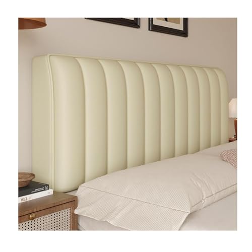 GLikur Faux Leather Bed Headboard Cover, Waterproof Thickened Stretch Headboard Slipcover Dustproof Protective Cover for Single/Double Bed Headboard(Beige,180cm)
