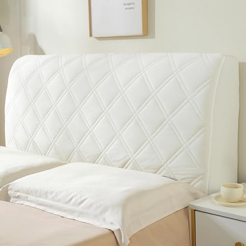 WJHDWYD Elastic Headboard Cover for Upholstered Bed/Wood/Leather Headboard Cover for Single Double Bed Rectangular/Slightly Rounded Headboard Slipcover Protector(Bianco,120-140cm)