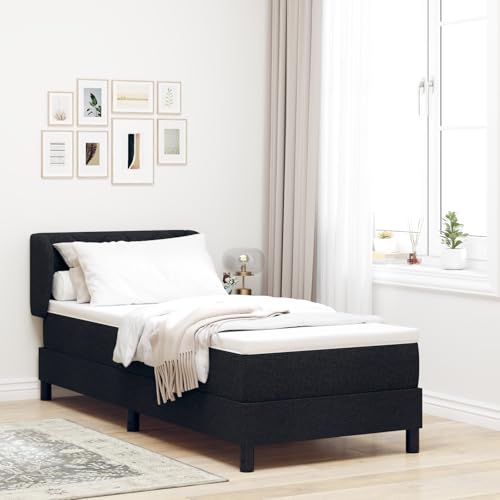 Teenpull Box Spring Bed with Mattress, Black, 80 x 200 cm, Fabric Cover, Single Bed for Bedroom and Guest Room