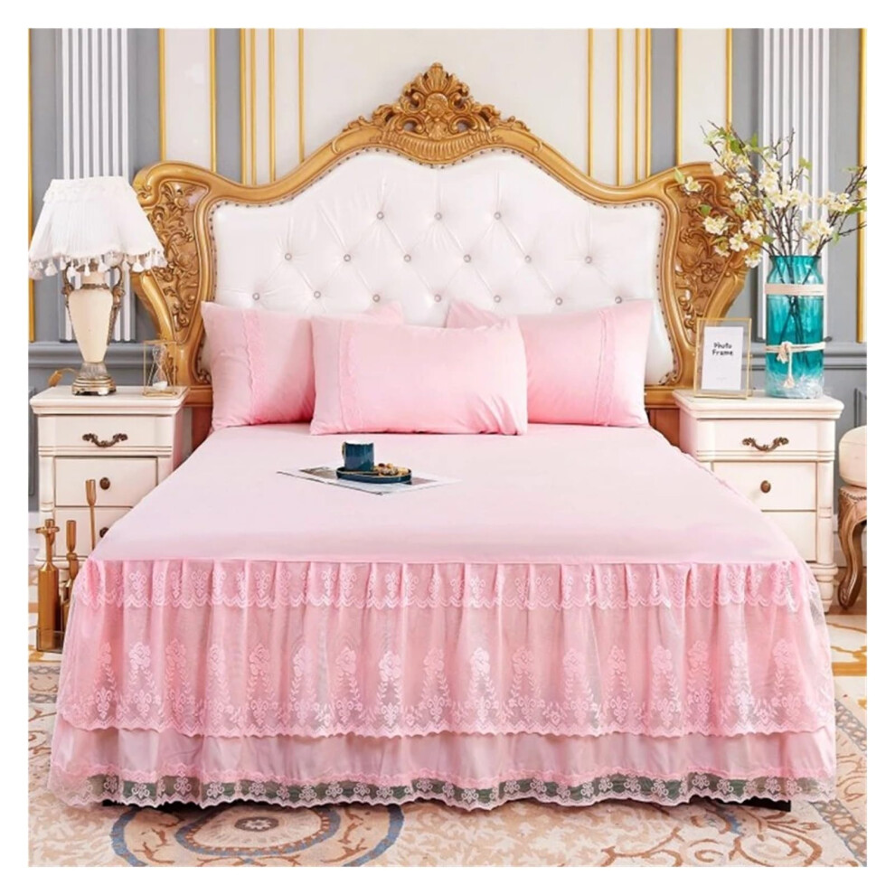 Bed Skirt Pillowcase Bed Set Ruffle Lace Three Layers Soft Fitted Sheet Cover for Single Double Bed with 2 Pillowcases