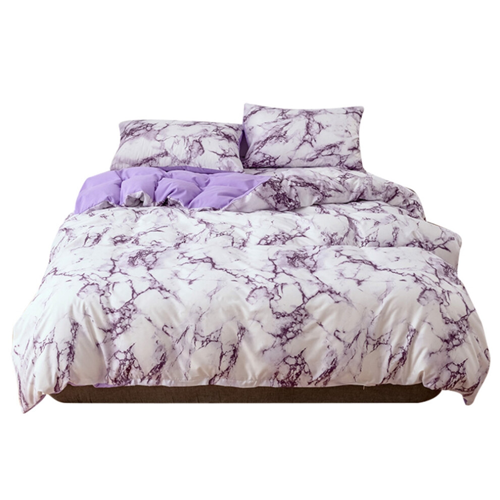 Duvet Cover for Single Bed, Material Soft Purple Marbled Print Quilted Fabric with Wide-Edge Pillowcase, Corner Ties and Durable Zipper Closure, Easy