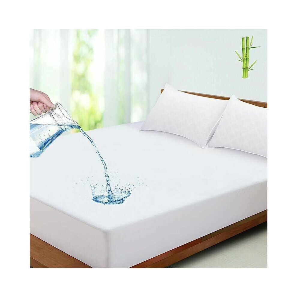 Noiseless Waterproof Bed Cover for Single Bed, Machine Washable Mattress Protector with Soft Mattress Pad Fitted Mattress Cover for Kids Room,