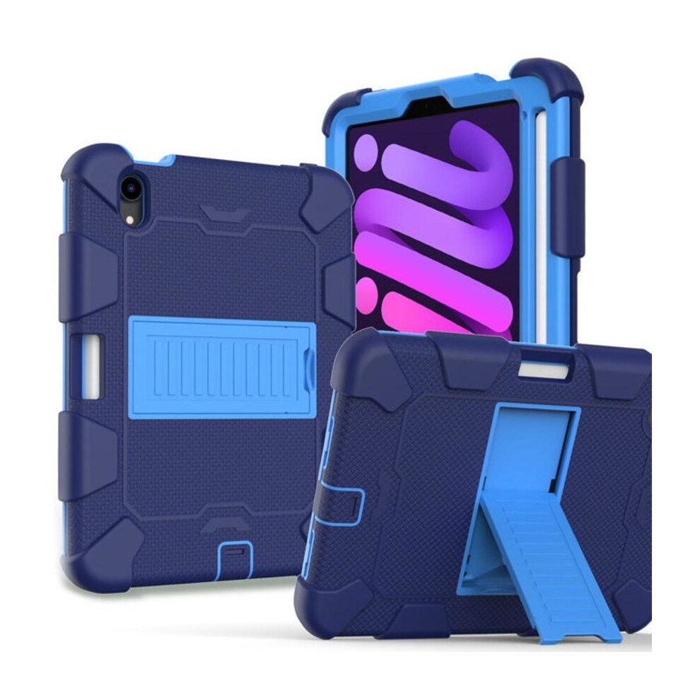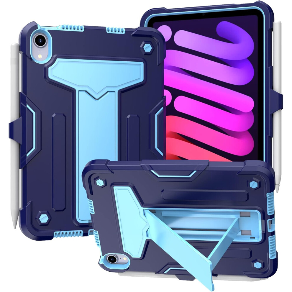 Rugged Case for iPad Mini 6 - Heavy-Duty Blue Shockproof Cover with Kickstand and Pencil Holder for the 8.3-inch Tablet