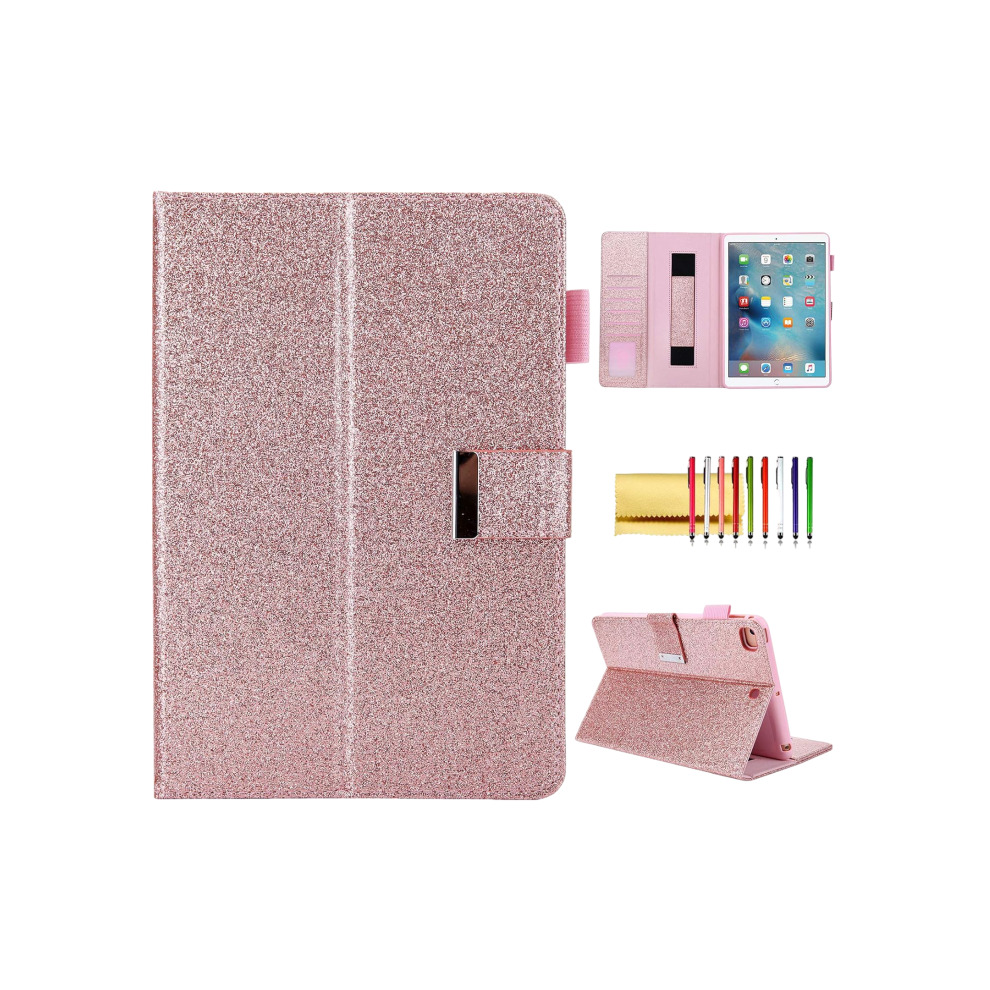 Pink Glitter Case for iPad Mini 6 - Protective Folio Wallet Cover with Auto Wake/Sleep and Card Holder for the 2021 Model