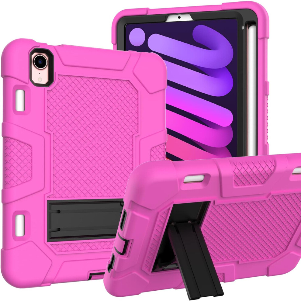 Heavy-Duty Pink Case for iPad Mini 6 - Shockproof Cover with Kickstand and Pencil Holder for the 8.3-inch Tablet