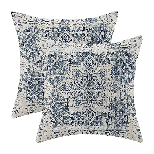 Gohdiwh Boho Pillow Covers 18x18 Set of 2, Ethnic Design Decorative Throw Pillows Linen Blue Carpet Pattern Farmhouse Cushion Pillow Covers for Sofa Couch Outdoor