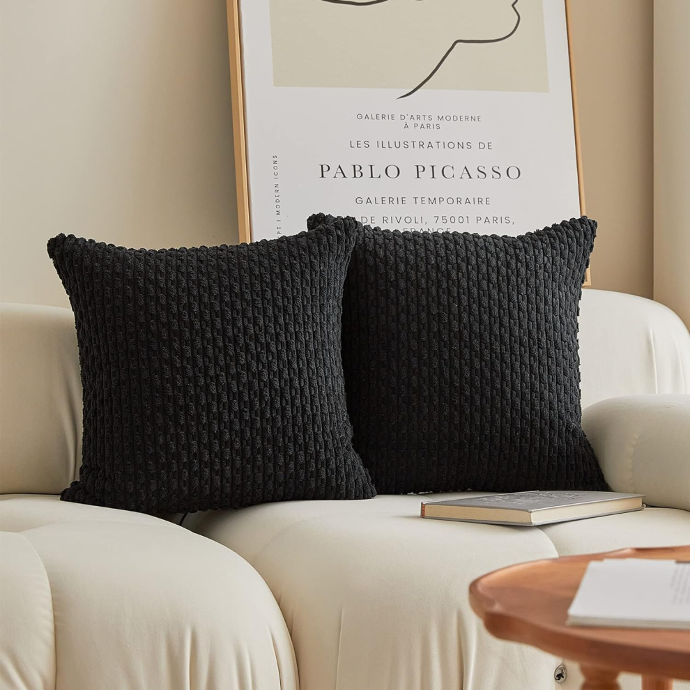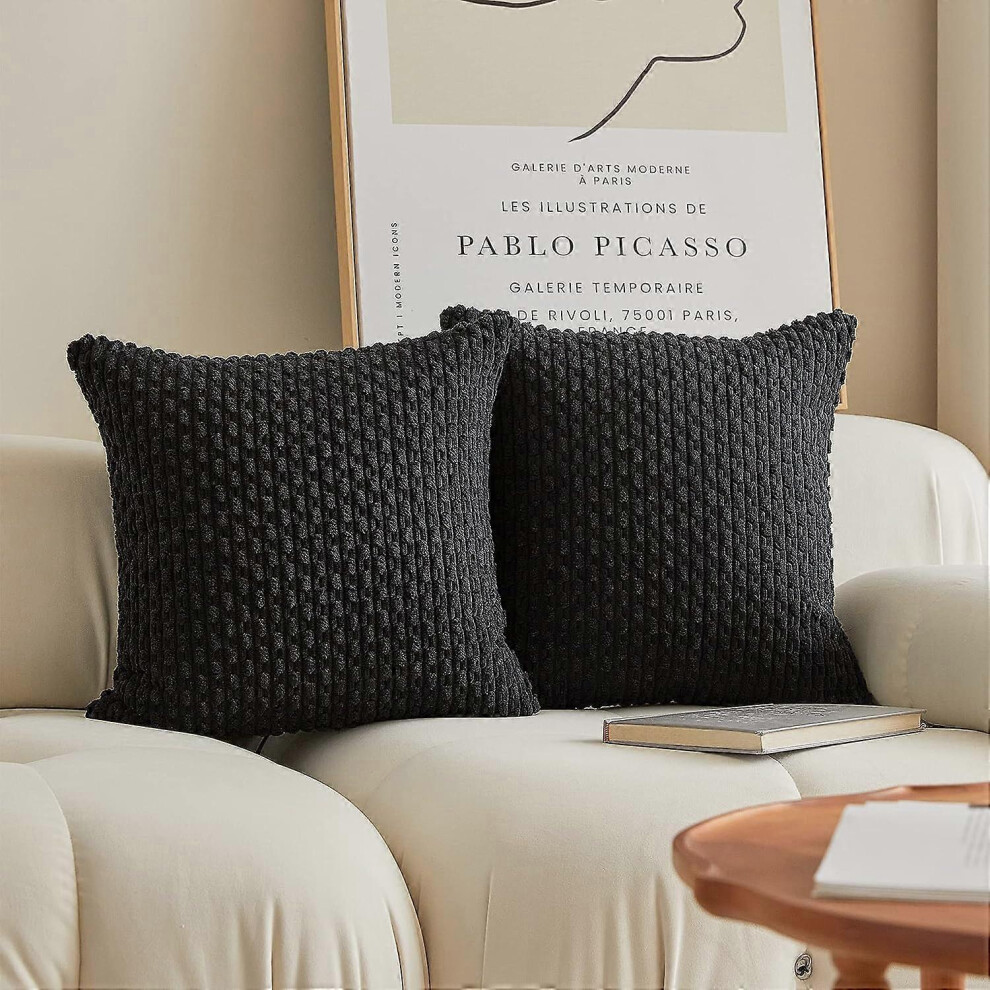 2 Packs Decorative Pillow Covers for Couch Outdoor Pillows Cover 16x16 Striped Velvet Pillow Covers, Set of 2, 40cm x 40cm, 16 x 16 Inch, Black
