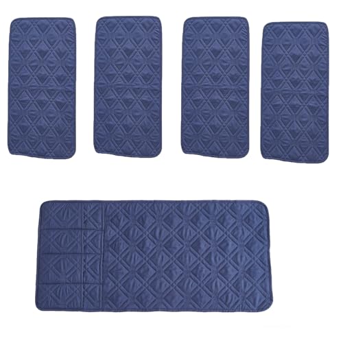 Non-Slip Quilted Armrest and Headrest Covers for Sofa Recliner, Waterproof Furniture Protector with Side Storage Pocket, 45x90cm Pet-Resistant Machine Washable(Tibetan blue,5PCS-A)