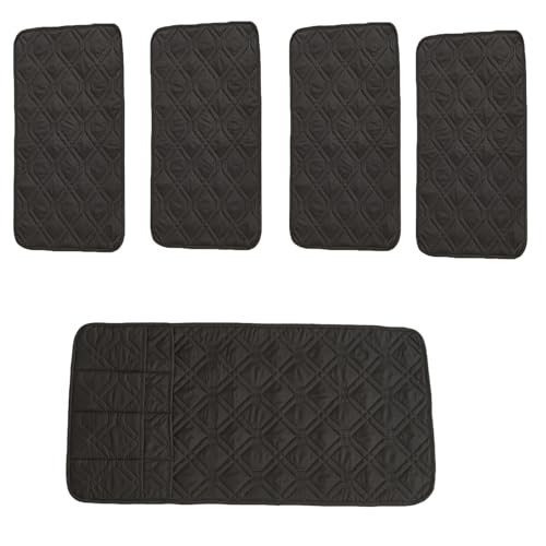 Non-Slip Quilted Armrest and Headrest Covers for Sofa Recliner, Waterproof Furniture Protector with Side Storage Pocket, 45x90cm Pet-Resistant Machine Washable(Black,5PCS-A)