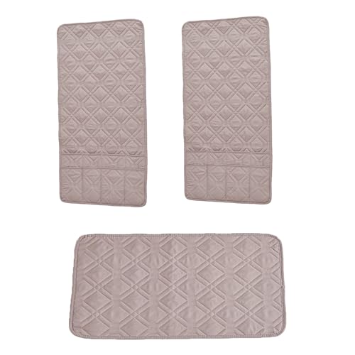 Non-Slip Quilted Armrest and Headrest Covers for Sofa Recliner, Waterproof Furniture Protector with Side Storage Pocket, 45x90cm Pet-Resistant Machine Washable(Khaki,3PCS-A)