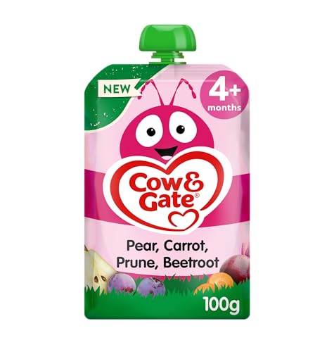 Cow & Gate Baby Food Pouches - Pear Carrot Prune & Beetroot - Baby Snacks for Weaning, Toddlers and Kids - Fruit Pouch Multipack - 4+ Months - 100g (Pack of 6)