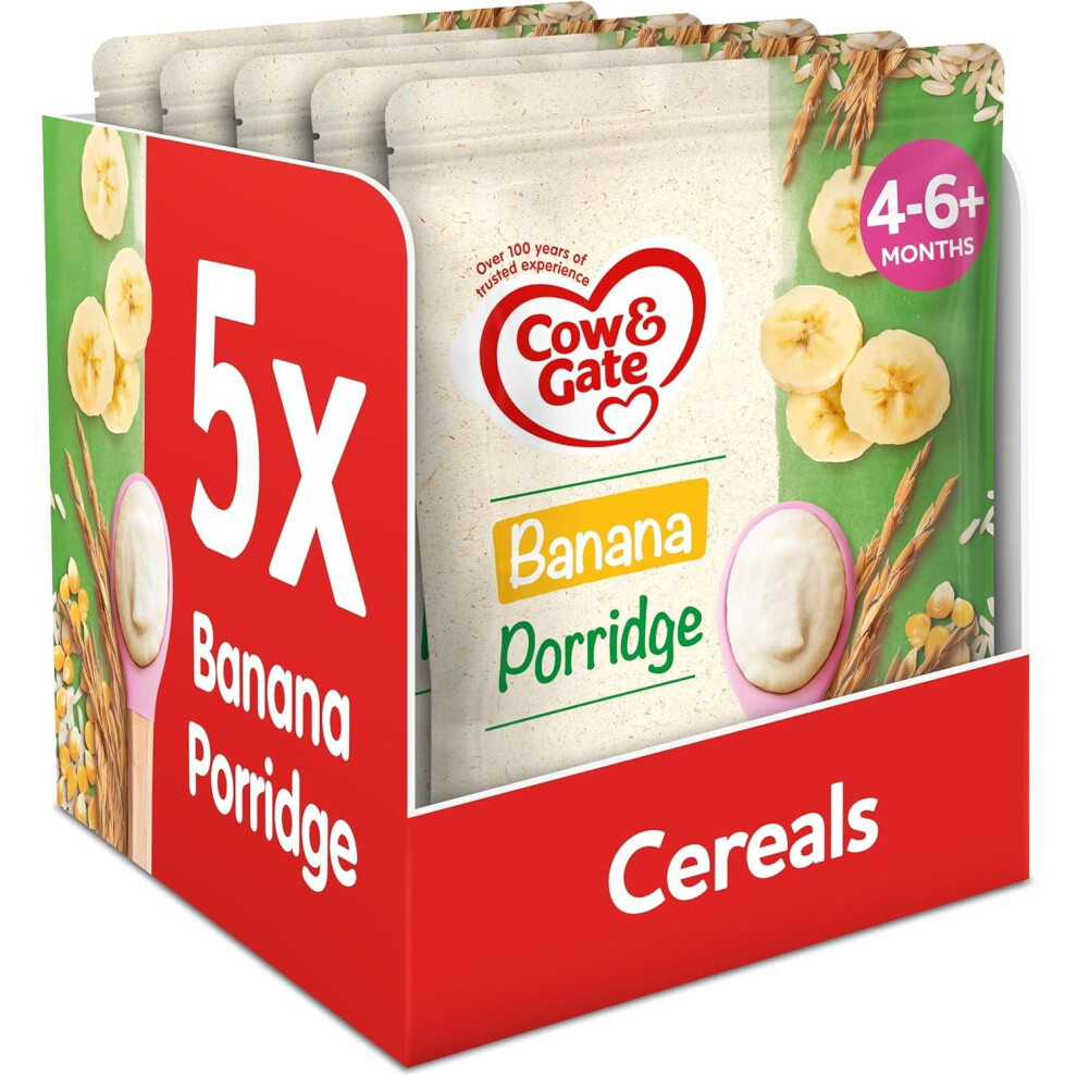 Cow & Gate Banana Porridge Baby Food Cereal, 4-6+ Months, 125g (Pack of 5)