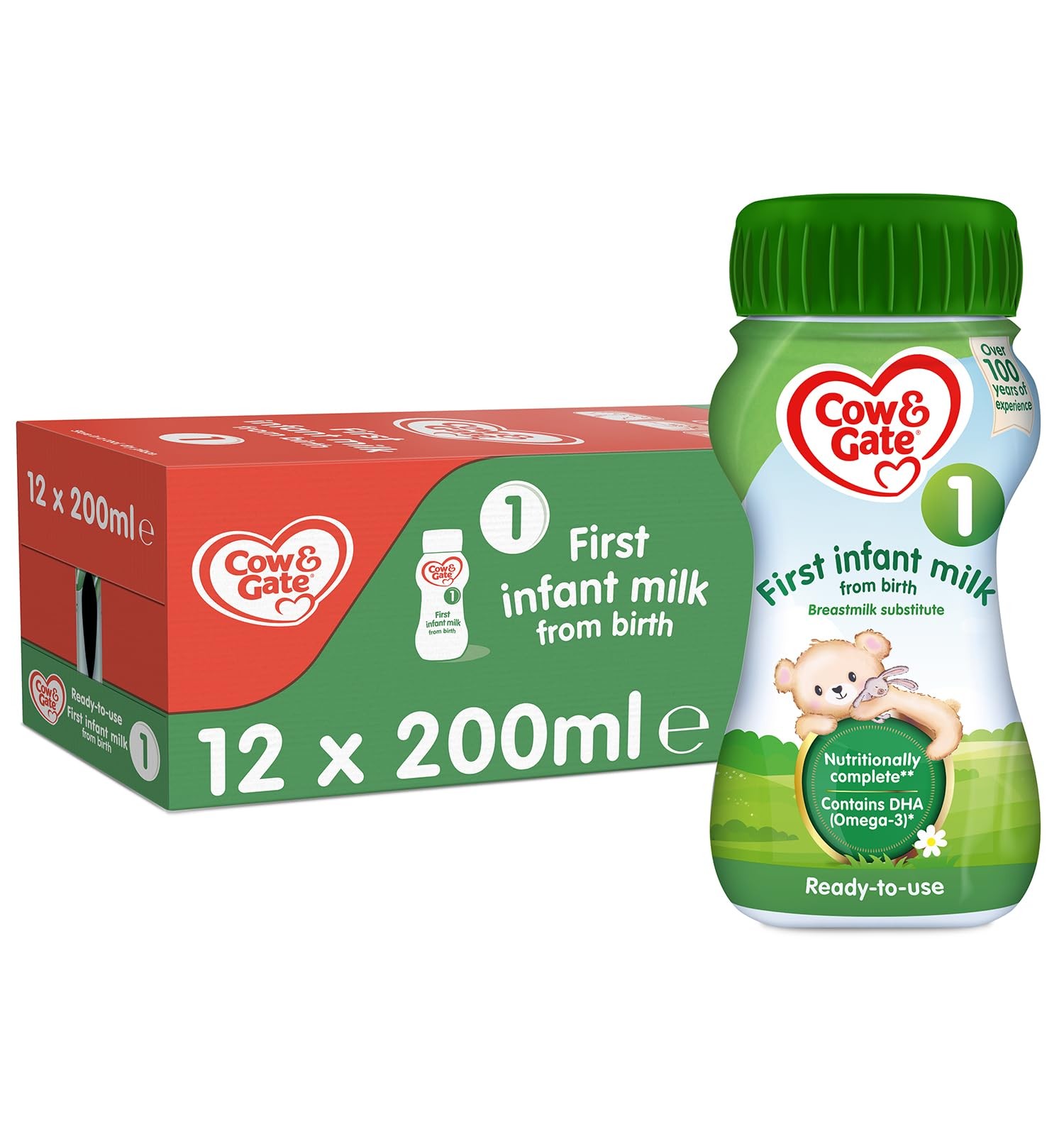 Cow & Gate First Infant Milk Stage1 Ready Made Baby Formula - Pack of 12 x 200ml
