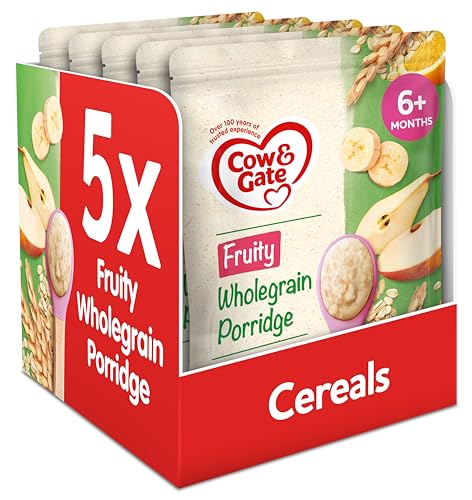 Cow & Gate Fruity Wholegrain Porridge Baby Food Cereal, 6+ Months, 125g (Pack of 5)