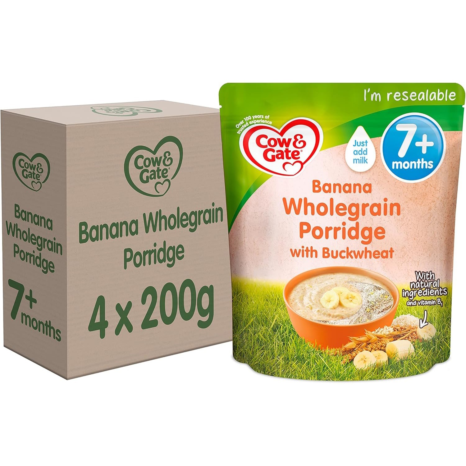 Cow & Gate Banana Wholegrain Porridge Baby Food Cereal, 7+ Months, 200 g, Pack of 4