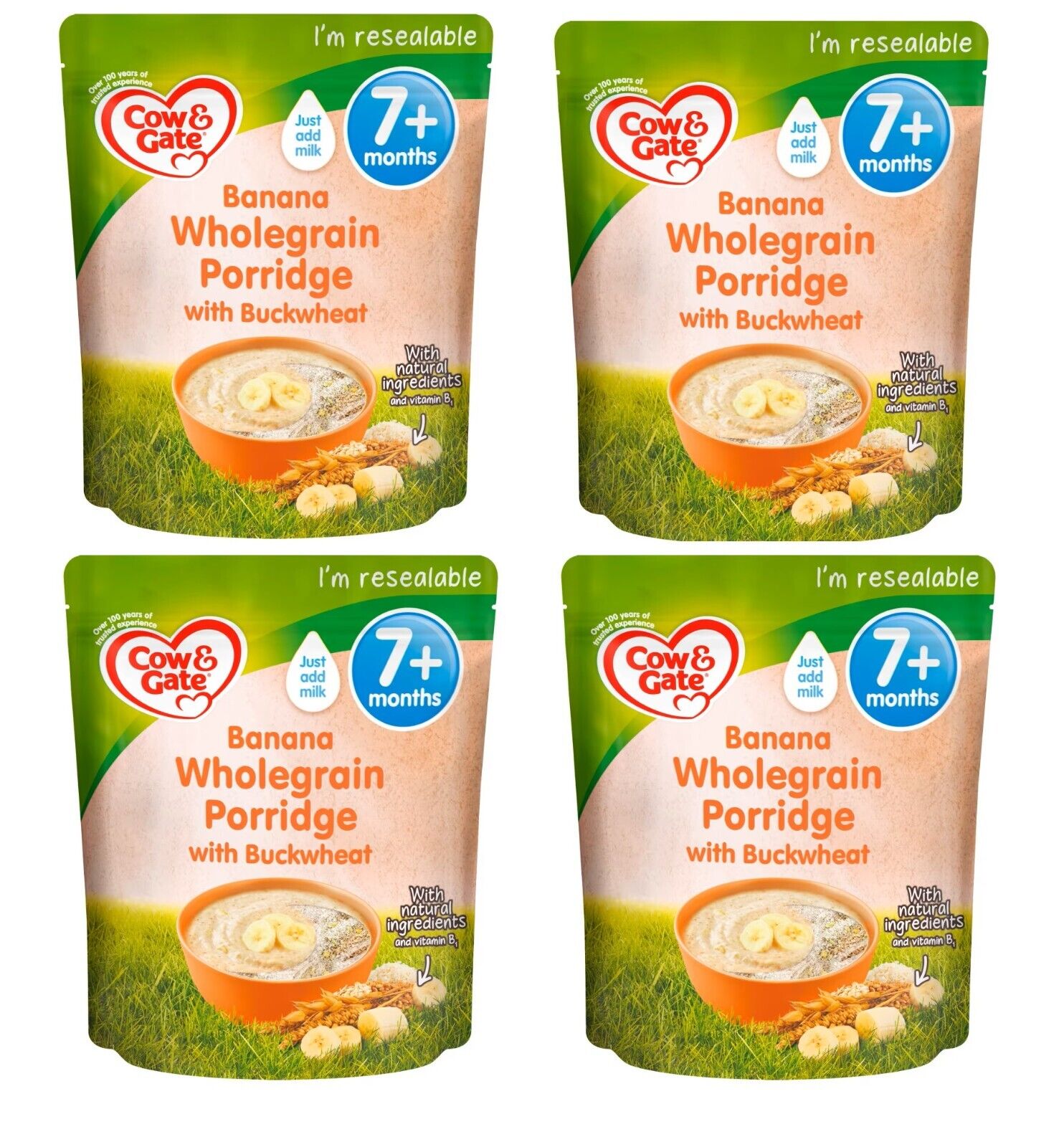 4 x 200g Cow & Gate Banana Wholegrain Porridge Baby Cereal 7+ Months