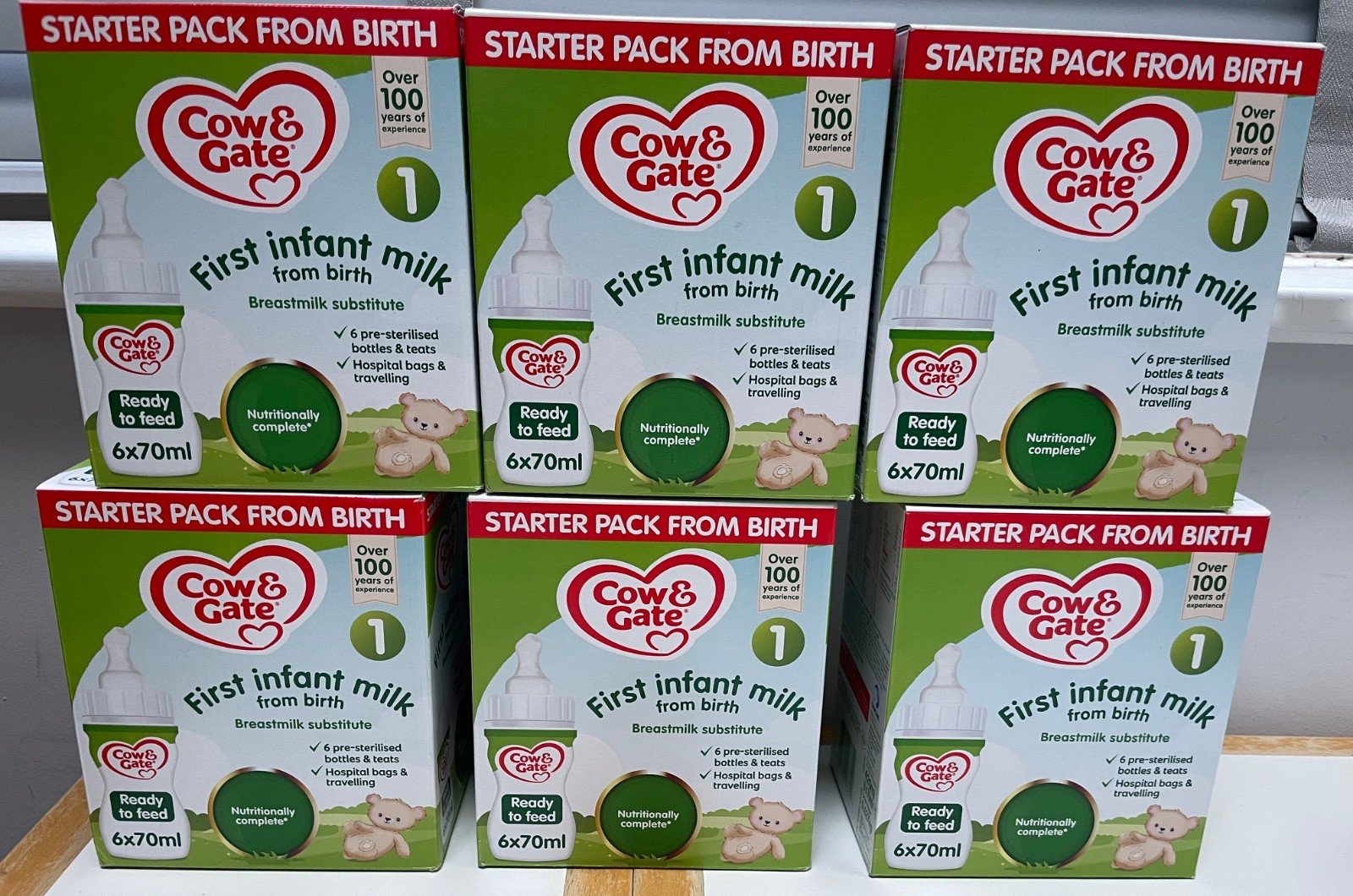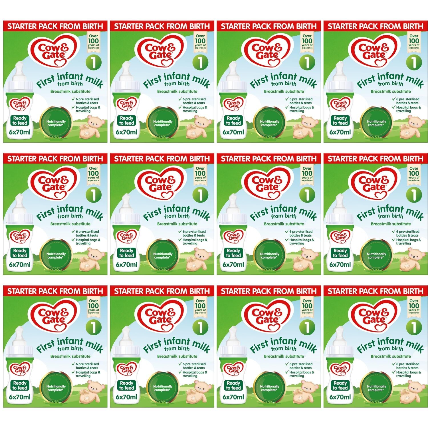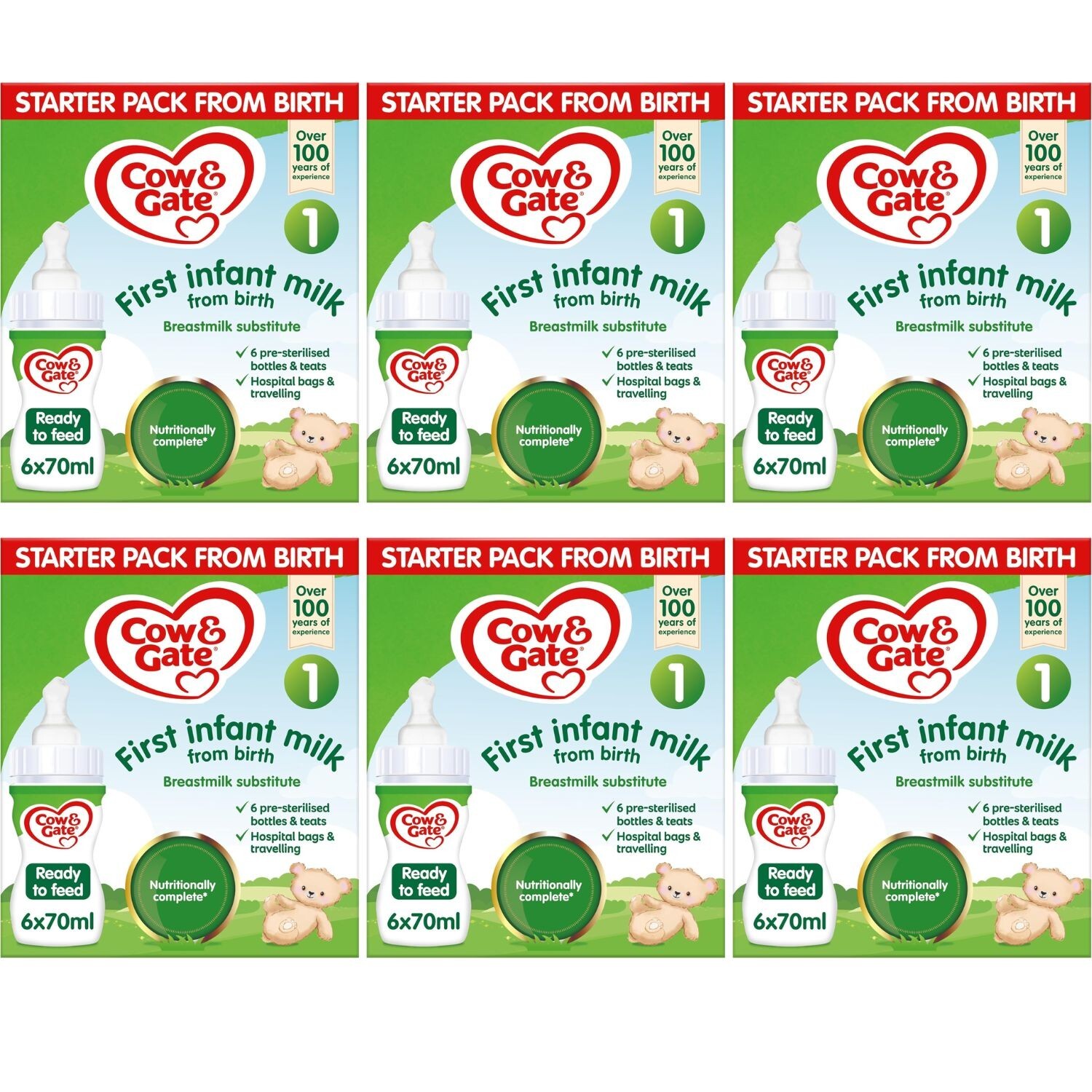 COW & GATE 1 First Baby Milk Formula Starter Pack From Birth 6 Boxes of 6 x 70ml