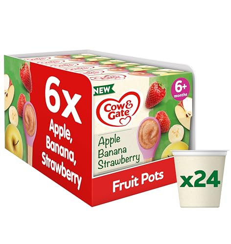 Cow & Gate Baby Food - Apple Strawberry & Banana - Baby, Toddler and Kids Snacks - Fruit Pot Multipack - 6+ Months - 4x100g (24 Pots)