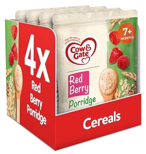 Cow & Gate Red Berry Wholegrain Porridge Baby Food Cereal, 7+ Months, 200g (Pack of 4)