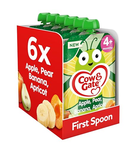 Cow & Gate Baby Food Pouches - Apple Pear Banana & Apricot - Baby Snacks for Weaning, Toddlers and Kids - Fruit Pouch Multipack - 4+ Months - 100g (Pack of 6)