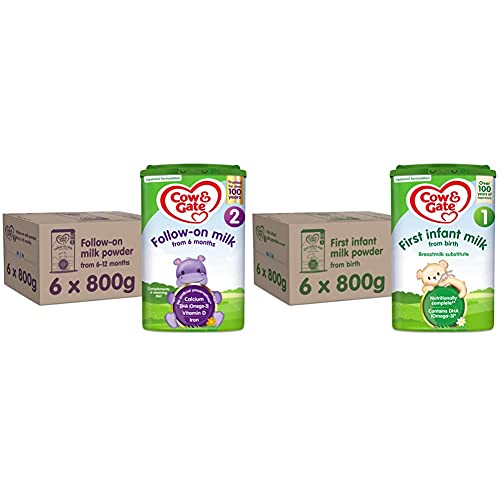 Cow & Gate 2 Follow On Baby Milk Powder Formula, 6-12 Months, 800g (Pack of 6) & 1 First Infant Baby Milk Powder Formula, from Birth, 800g (Pack of 6)