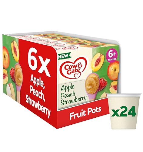 Cow & Gate Baby Food - Apple Peach & Strawberry - Baby, Toddler and Kids Snacks - Fruit Pot Multipack - 6+ Months - 4x100g (24 Pots)