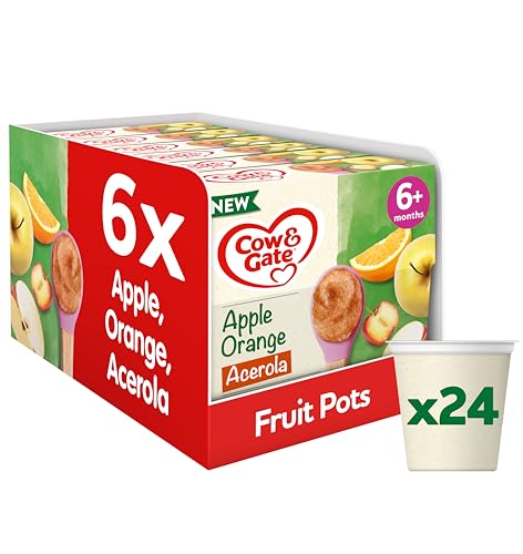 Cow & Gate Baby Food - Apple Orange & Acerola - Baby, Toddler and Kids Snacks - Fruit Pot Multipack - 6+ Months - 4x100g (24 Pots)