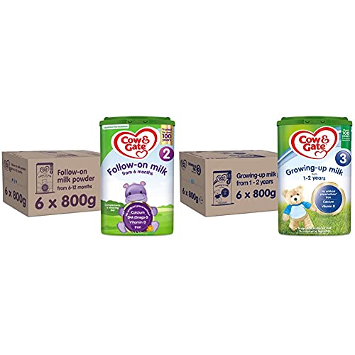 Cow & Gate 2 Follow On Baby Milk Powder Formula, 6-12 Months, 800g (Pack of 6) & 3 Toddler Baby Milk Powder Formula, 1-2 Years, 800g (Pack of 6)